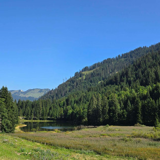 Pour terminer notre visite, nous nous sommes rendus au bord du lac de Morgins. C’est un petit havre de sérénité aux portes de la France. Cette réserve naturelle se trouve juste à quelques mètres de la frontière. Il est possible de se stationner à proximité puis d’ensuite en faire le tour. Le chemin est accessible aux poussettes (bien que rocailleux) et relativement plat. La boucle passe sur le retour par un chemin qui borde la route et donc la circulation. Par sécurité, on a préféré revenir sur nos pas et rester sur l’itinéraire piéton entre pâturages et forêt. La baignade est interdite dans ce lac car la faune y est protégée. Par contre, des emplacements de pique-nique ont été aménagés et permettent de profiter pleinement et sereinement de ce joli coin de verdure tout en cassant la croûte.